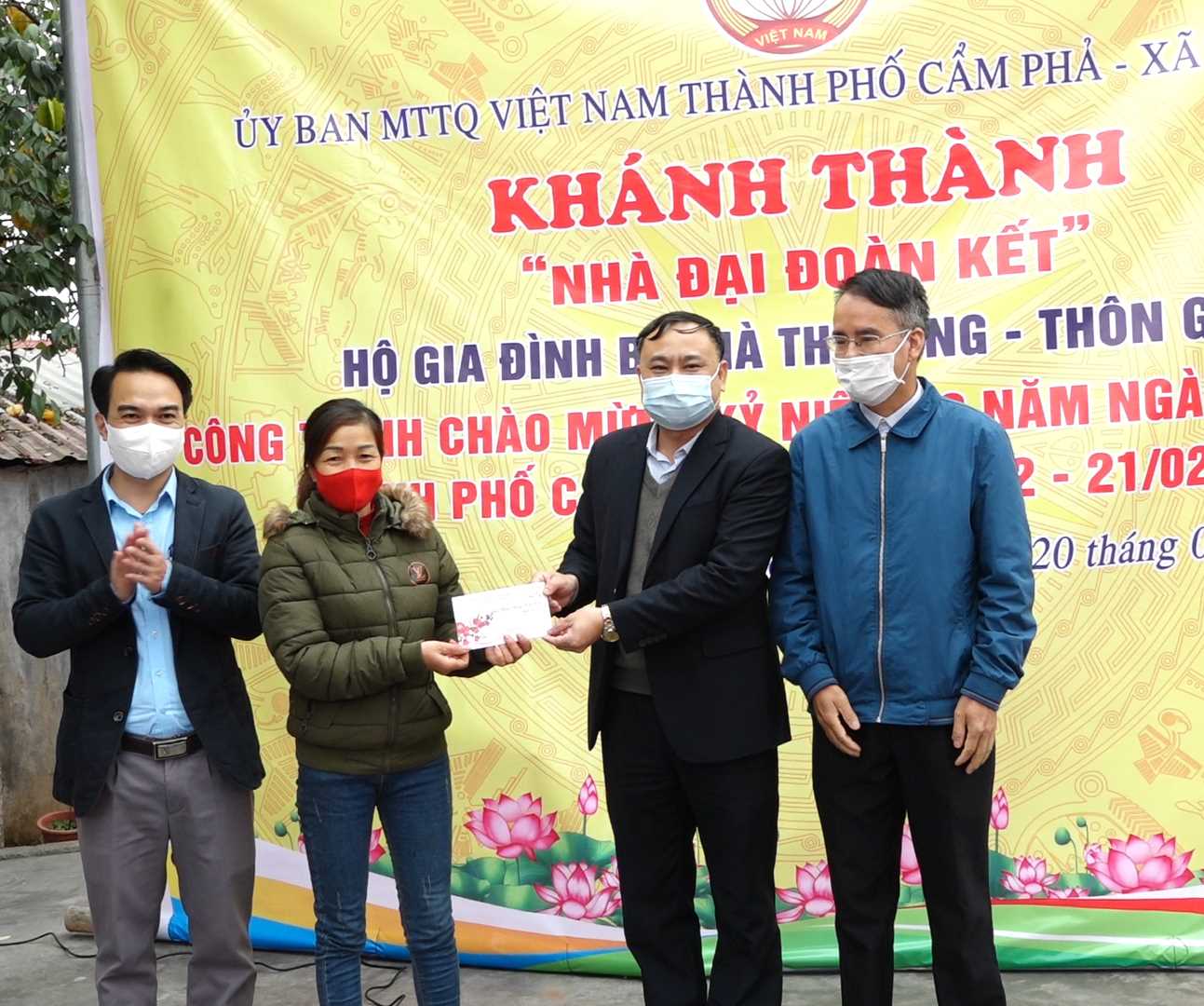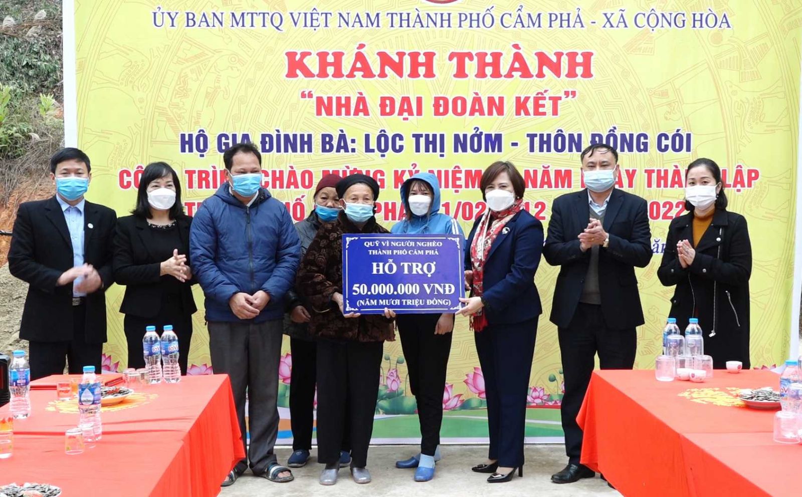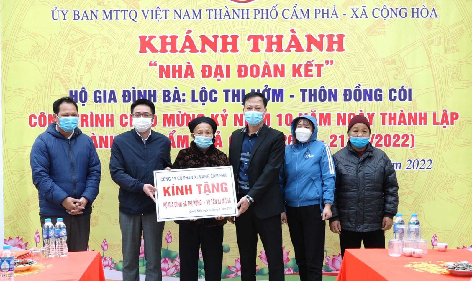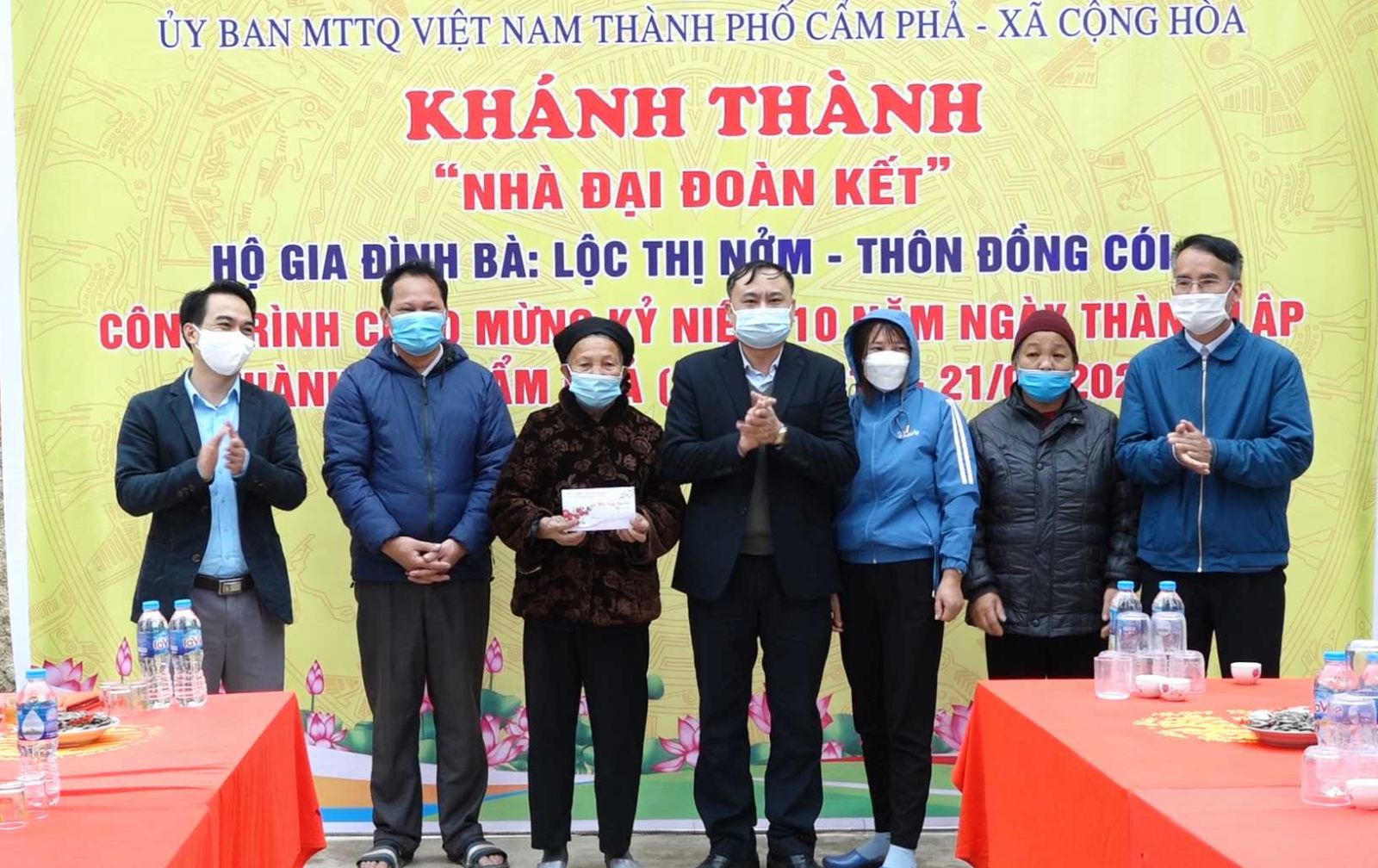 Sáng ngày 20/1/2022, tại xã Cộng Hòa, UBMTTQ thành phố tổ chức lễ khánh thành và bàn giao 02 nhà đại đoàn kết cho gia đình bà Hà Thị Hồng ở thôn Giữa và gia đình bà Lộc Thị Nởm ở thôn Đồng Cói. Đồng chí Nguyễn Thị Kim Phượng – Phó Bí thư Thường trực Thành ủy dự và chung vui với các gia đình. Công trình được gắn biển chào mừng kỷ niệm 10 năm thành lập thành phố Cẩm Phả (21/2/2012 – 21/2/2022).