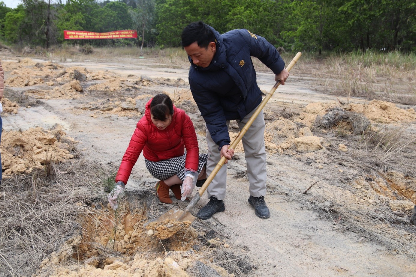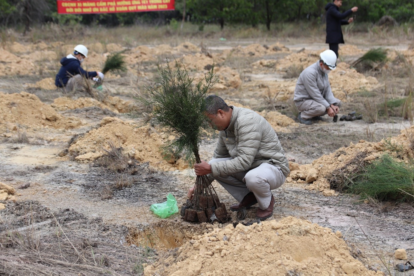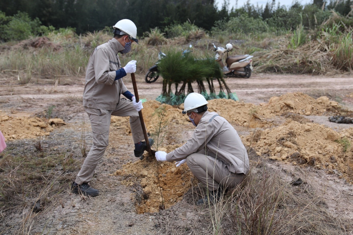 Ngay sau Lễ phát động, các đồng chí lãnh đạo cùng cán bộ, đoàn viên, hội viên của các Tổ chức Quần chúng Công ty đã tham gia trồng 800 cây phi lao – loài cây có khả năng sinh trưởng rất nhanh, thích ứng với môi trường sống khô hạn, nắng nóng, ven biển, tại khu vực bãi đất trống bên cạnh kho đá vôi.