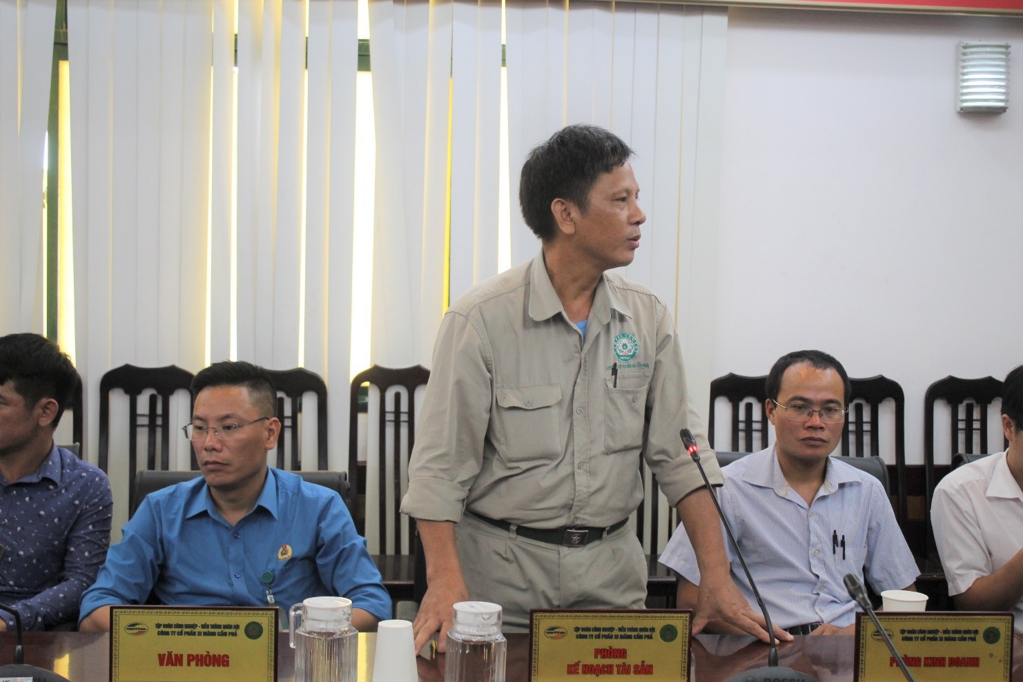 Đ/c Thân Văn Luyện, phòng Kỹ thuật mỏ_con Liệt sỹ Thân Văn Nông phát biểu tại buổi gặp mặt