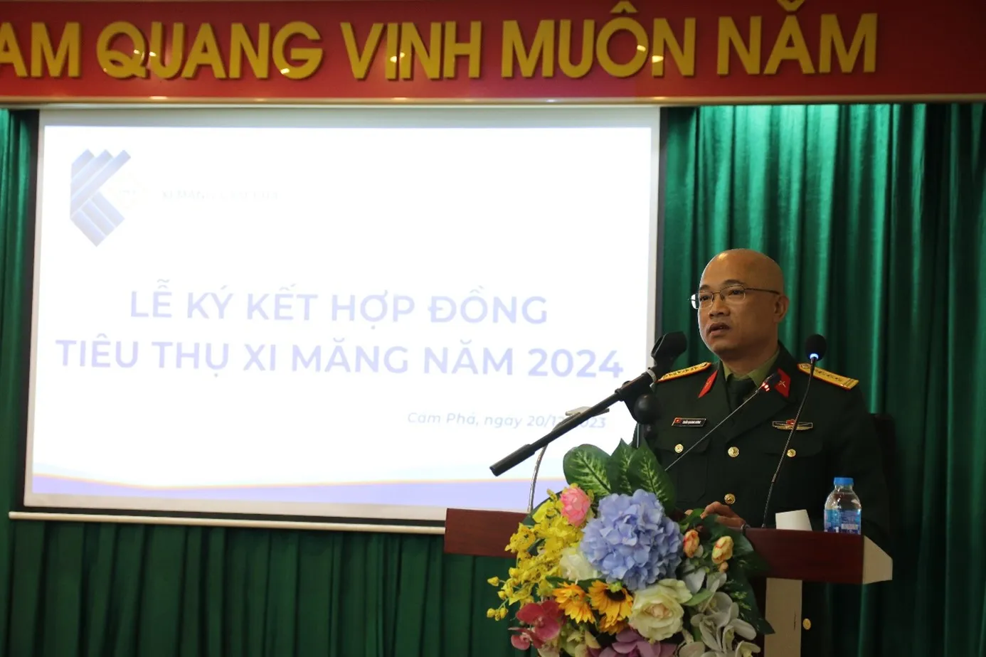 Mở đầu buổi lễ, đ/c Đại tá Trần Quang Hưng – Phó Bí thư Đảng ủy, Tổng Giám đốc Công ty đã có đôi lời chia sẻ về hoạt động sản xuất kinh doanh trong năm 2023 - một năm đặc biệt khó khăn và thử thách. Thị trường bất động sản đóng băng trên toàn quốc; Thuế xuất khẩu clinker tăng từ 5% lên 10% gây sụt giảm lớn về sản lượng tiêu thụ, ảnh hưởng lớn đến hoạt động sản xuất kinh doanh của Công ty. Thay mặt toàn bộ đội ngũ CBCNV Công ty, đ/c gửi lời cảm ơn chân thành và sâu sắc nhất tới Quý Nhà phân phối đã đồng hành, hợp tác, cũng như ủng hộ Công ty trong thời gian qua. Chính những sự yêu mến và niềm tin vào chất lượng và thương hiệu XMCP của Quý Nhà phân phối là niềm tự hào và thành công lớn nhất của XMCP, đồng thời cũng là động lực để XMCP tiếp tục phát triển trong tương lai.