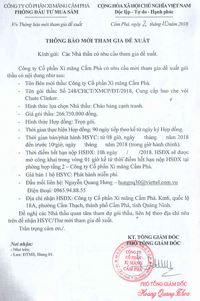Thông báo mời tham gia cung cấp bao che vòi chút Clinker