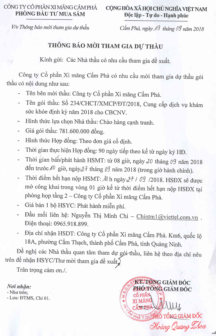 Thông báo mời tham gia cung cấp dịch vụ khám sức khỏe định kỳ cho CBCNV Năm 2018