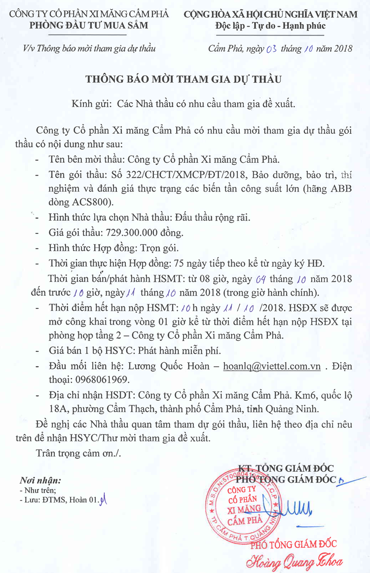 Thông báo mời tham gia đề xuất bảo dưỡng, bảo trì, thí nghiệm và đánh giá thực trạng biến tần công suất lớn (Hãng ABB dòng ACS800)