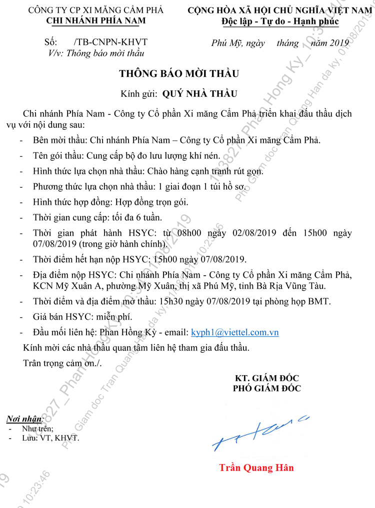 Thông báo mời tham gia đề xuất Cung cấp bộ đo lưu lượng khí nén