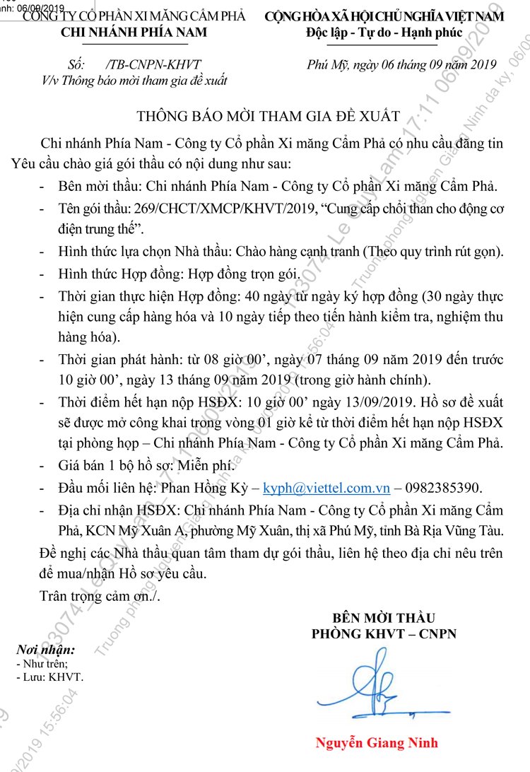 Thông báo mời tham gia đề xuất Cung cấp chổi than cho động cơ điện trung thế