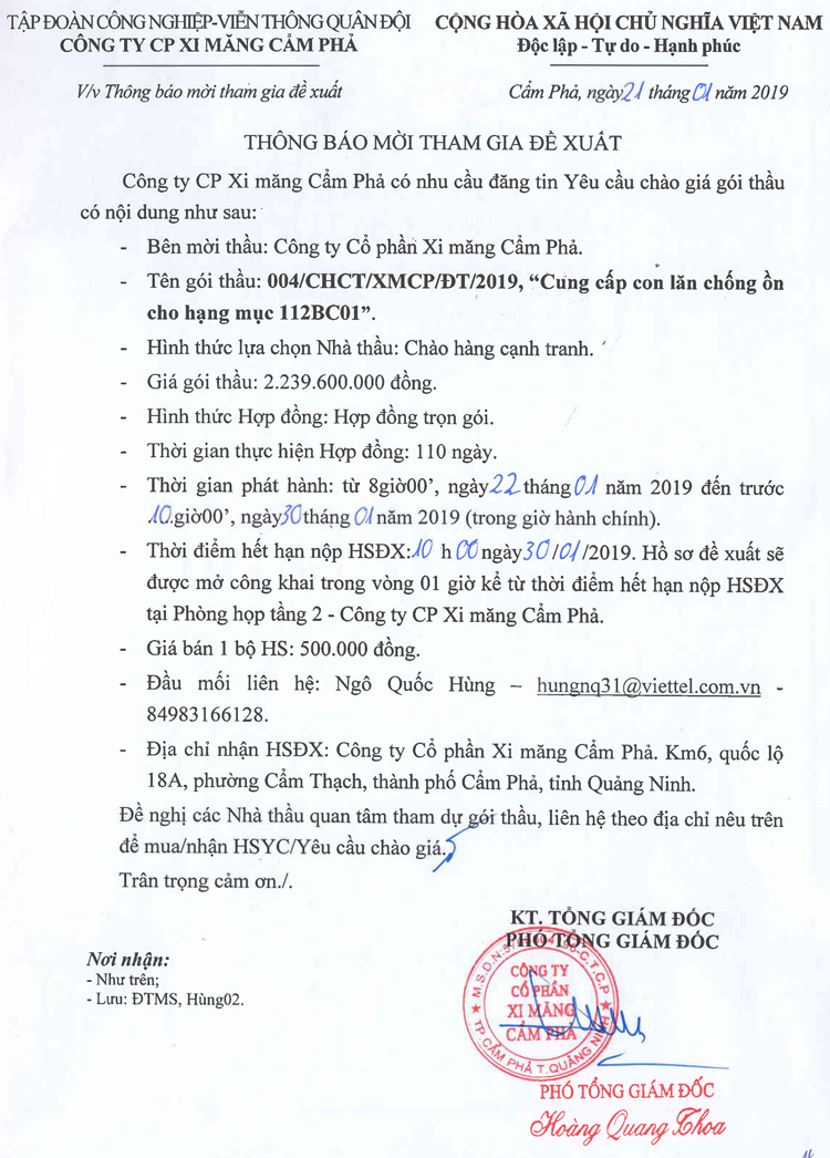 Thông báo mời tham gia đề xuất cung cấp con lăn chống ồn hạng mục 112BC01