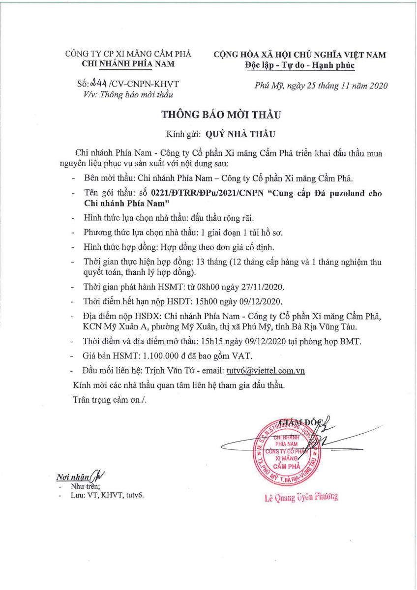 Thông báo mời tham gia đề xuất cung cấp đá puzoland cho Chi nhánh Phía Nam