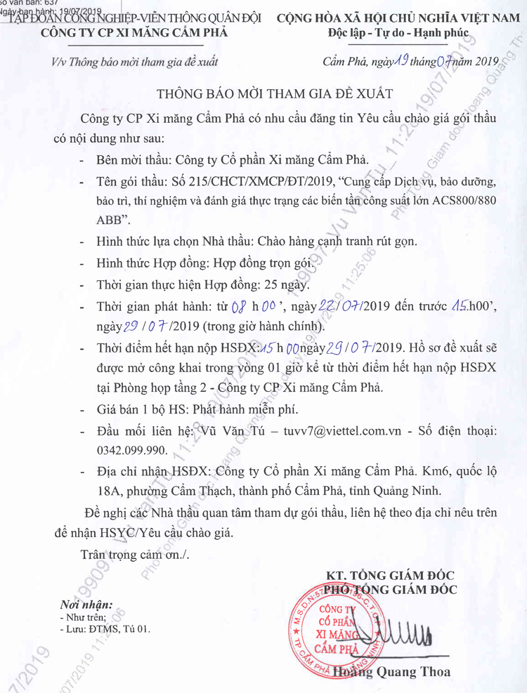 Thông báo mời tham gia đề xuất cung cấp dịch vụ, bảo dưỡng, bảo trì, thí nghiệm và đánh giá thực trạng các biến tần công suất lớn ACS800/880 ABB