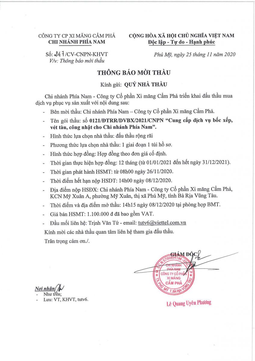 Thông báo mời tham gia đề xuất cung cấp dịch vụ bốc xếp, vét tàu, công nhật cho Chi nhánh Phía Nam