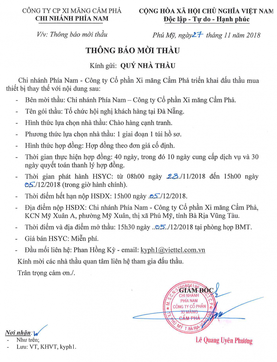 Thông báo mời tham gia đề xuất cung cấp dịch vụ tổ chức hội nghị khách hàng tại Đà Nẵng