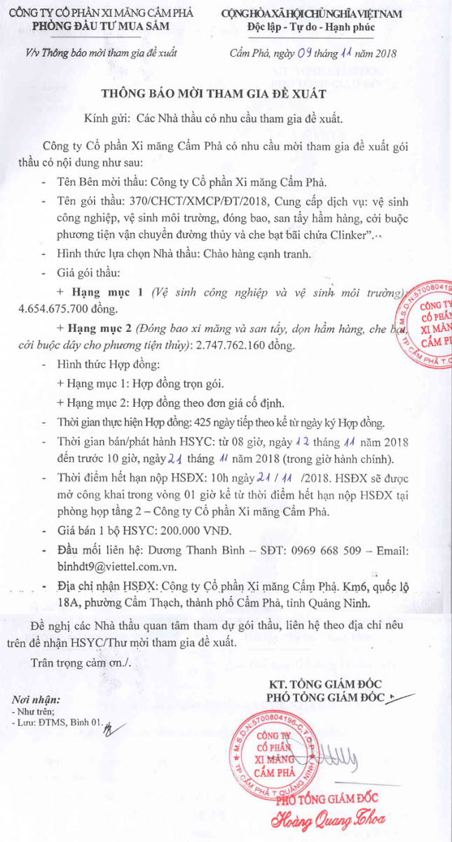 Thông báo mời tham gia đề xuất cung cấp dịch vụ vệ sinh công nghiệp tại nhà máy chính