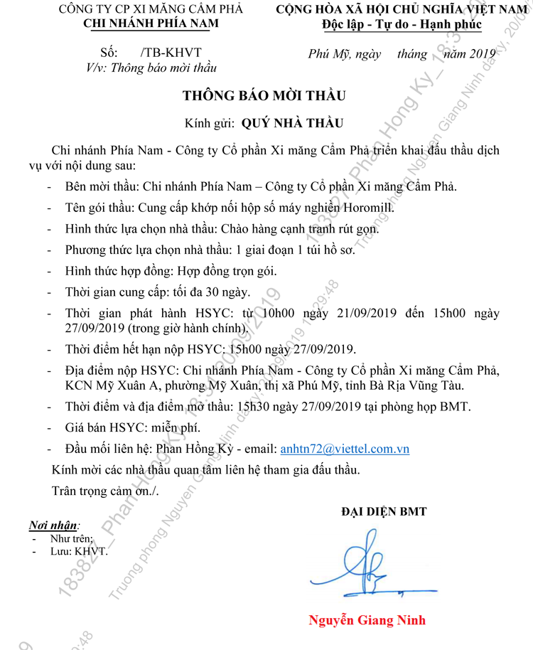 Thông báo mời tham gia đề xuất Cung cấp khớp nối hộp số máy nghiền Horomill