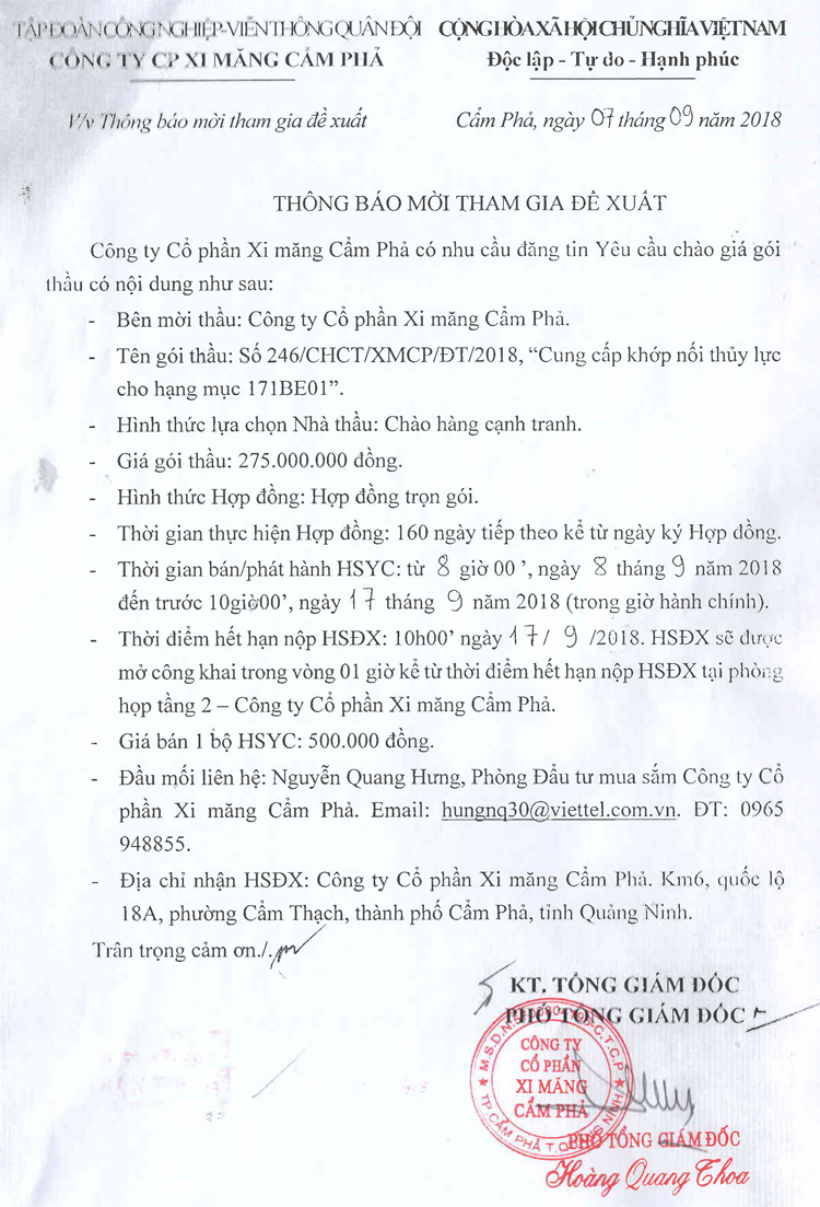 Thông báo mời tham gia đề xuất cung cấp khớp nối thủy lực