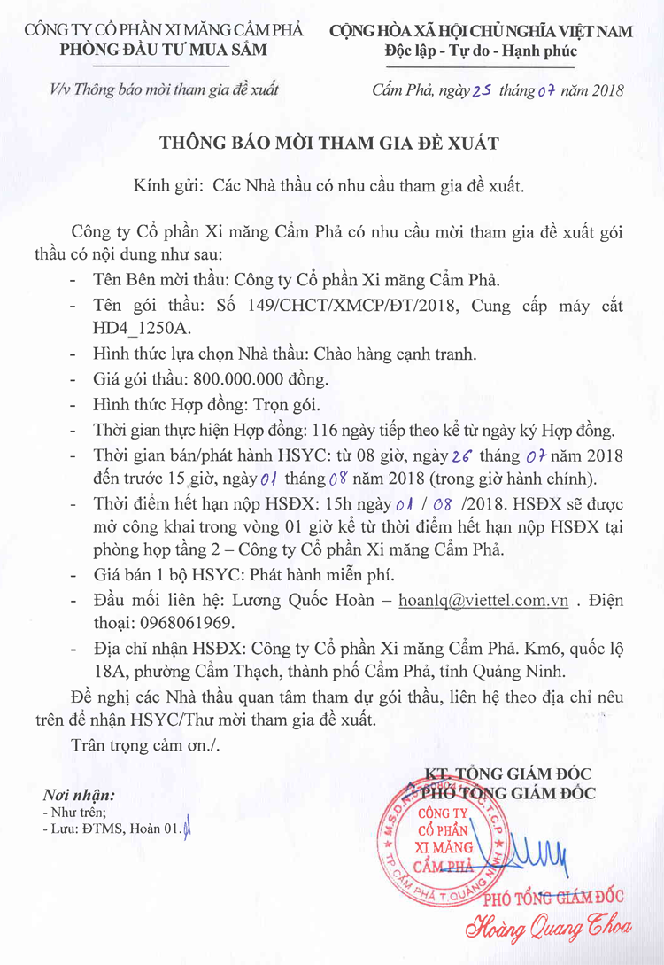 Thông báo mời tham gia đề xuất cung cấp máy cắt HD4_1250A