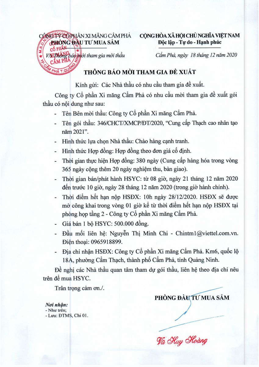 Thông báo mời tham gia đề xuất cung cấp thạch cao nhân tạo năm 2021