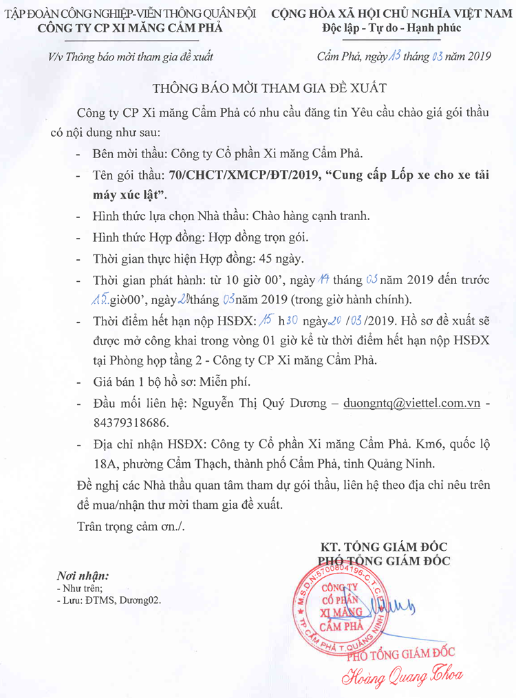 Thông báo mời tham gia đề xuất Cung cấp vật tư, thiết bị cho máy in phun