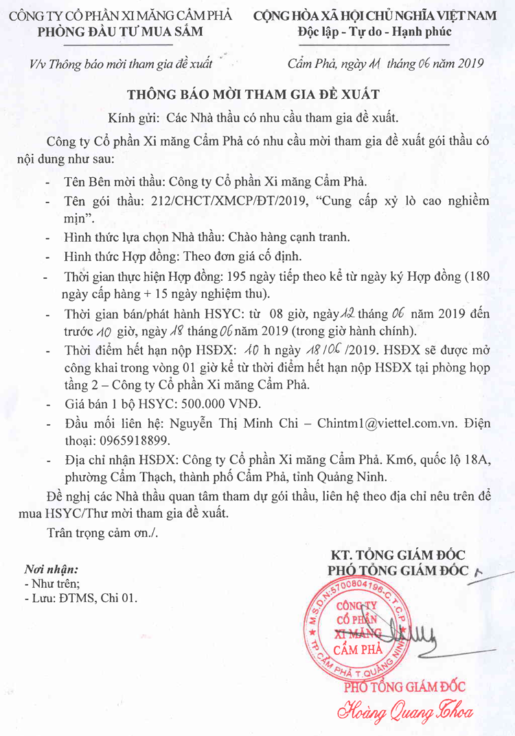 Thông báo mời tham gia đề xuất cung cấp xỷ lò cao nghiền mịn