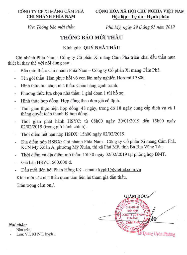Thông báo mời tham gia đề xuất hàn phục hồi vỏ con lăn máy nghiền Horomill 3800