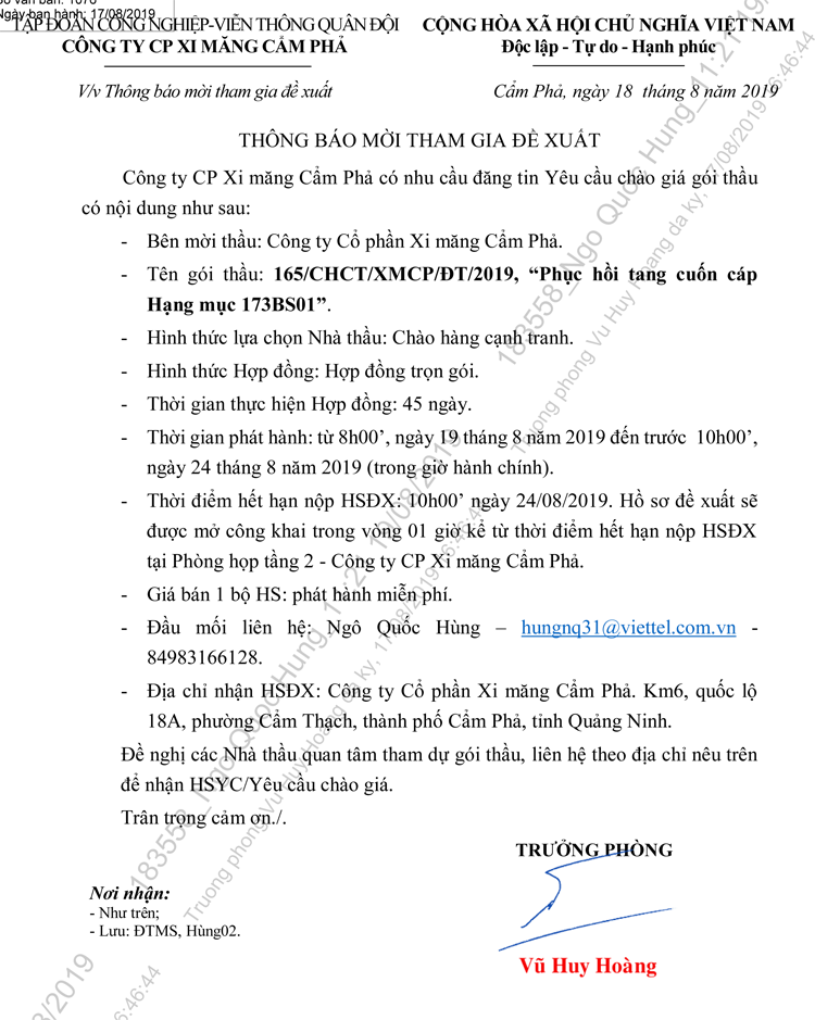 Thông báo mời tham gia đề xuất Phục hồi tang cuốn cáp hạng mục 173BS01