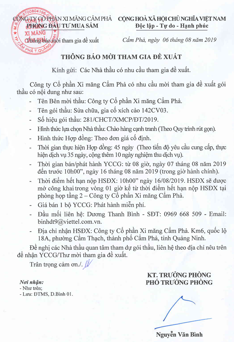 Thông báo mời tham gia đề xuất Sửa chữa, gia cố xích cào 142CV03