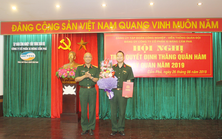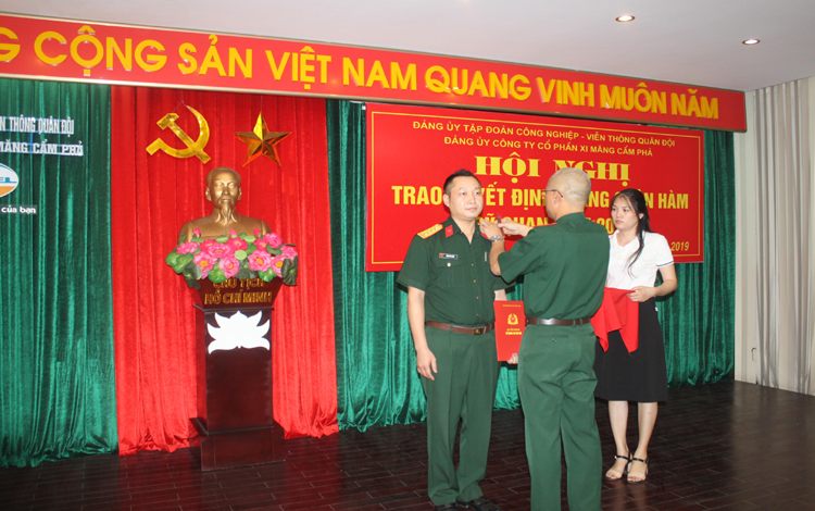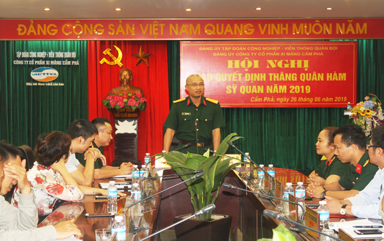 Thay mặt TV ĐU, chỉ huy đơn vị, đồng chí Thượng tá Trần Quang Hưng Bí thư Đảng ủy, TGĐ Công ty phát biểu tại Hội nghị: đồng chí được nhận quyết định ngày hôm nay đã có nhiều cố gắng và hoàn thành xuất sắc nhiệm vụ được giao, có những đóng góp tích cực vào việc hoàn thành nhiệm vụ của cơ quan, đơn vị nói riêng cũng như của Tập đoàn nói chung. Với cấp quân hàm cao hơn, đồng chí sẽ thể hiện sự cố gắng cao hơn, để sau 3 hoặc 4 năm nữa tiếp tục nhận được cấp hàm mới xứng đáng với đóng góp của các đồng chí cho đơn vị, Đ/c Khiển tiếp tục song hành cùng Công ty vượt qua các khó khăn, thử thách trong giai đoạn mới, nhất là trong giai đoạn tiến tới Đại hội Đảng bộ Công ty và Tập đoàn nhiệm kỳ tới. Tổng Giám đốc đã nhấn mạnh: “Với người Viettel không bao giờ được phép ngủ quên trong chiến thắng, mỗi thành công ngày hôm nay luôn mở ra nhiều thách thức, khó khăn phía trước”!