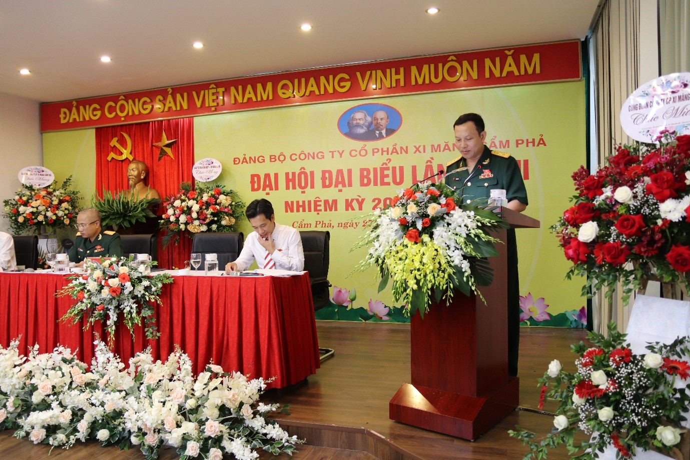 Phát biểu chỉ đạo tại Đại hội, đ/c Đại tá Nguyễn Đình Chiến – UV BTV, Phó Tổng Giám đốc Tập đoàn, ghi nhận và biểu dương những kết quả Đảng bộ Xi măng Cẩm Phả đã đạt được trong nhiệm kỳ 2015 - 2020 qua. Đ/c cũng chỉ rõ những mặt tồn tại và đề nghị Đảng bộ tập trung vào một số nội dung, đó là: Đảng bộ cần tập trung lãnh đạo xây dựng tốt khối đoàn kết thống nhất. Nghiên cứu để có sản phẩm mới và đa dạng sản phẩm, phấn đấu có 1 – 2 sản phẩm chiến lược. Chủ động trong kinh doanh và bán hết hàng, duy trì hoạt động SXKD có tăng trưởng trên 3% và ổn định, an toàn, đảm bảo đời sống cho người lao động và có lợi nhuận tốt để thực hiện các nội dung đề án tái cấu trúc đã xác định. Lãnh đạo mọi hoạt động đầu tư tài chính, ứng dụng công nghệ mới AI, tăng cường ứng dụng CNTT vào mọi hoạt động và thực hiện thành công chuyển đổi số. Tổ chức tốt giáo dục, tuyên truyền và hoạt động học tập, cập nhật kiến thức, nâng cao nhận thức, trình độ CMNV và kỹ năng về mọi mặt. Tăng cường hoạt động sáng kiến ý tưởng tạo môi trường xanh và tiết kiệm chi phí gắn với thương hiệu Viettel và Xi măng Cẩm Phả: “Mỗi CBCNV là một chiến sỹ bảo vệ thương hiệu Viettel và Xi măng Cẩm Phả”.