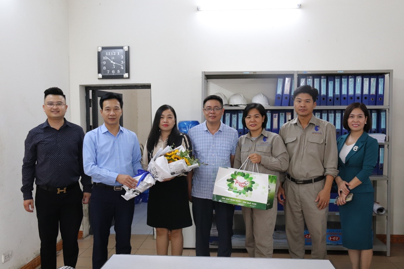 Bên cạnh đó, sáng ngày 20/10/2022, đại diện Ban Tổng Giám đốc Công ty, đ/c Hoàng Quang Thoa – Phó Tổng Giám đốc cùng đ/c Nguyễn Văn Trang – TP. Tổ chức – Chính trị và đại diện BCH các Tổ chức Quần chúng đã đến từng phòng ban, phân xưởng để trao tặng quà và bó hoa tươi thắm cùng những lời chúc tốt đẹp nhất đến các CBCNV nữ.