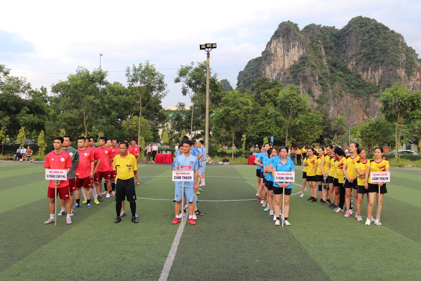 Ngay khi kết thúc buổi tuyên truyền, tiếp nối chuỗi hoạt động là chương trình giao hữu thể thao giữa Công ty CP Xi măng Cẩm Phả và UBND, Công an phường Cẩm Thạch gồm 2 bộ môn (thi đấu bóng đá nam và bóng chuyền hơi nữ) tại sân bóng Công ty. Đến dự và cổ vũ cho buổi giao hữu có các đồng chí lãnh đạo chỉ huy, cán bộ, BCH các Tổ chức quần chúng của 3 đơn vị và rất nhiều các cổ động viên nhiệt tình là CBCNV Xi măng Cẩm Phả và UBND, Công an phường Cẩm Thạch.