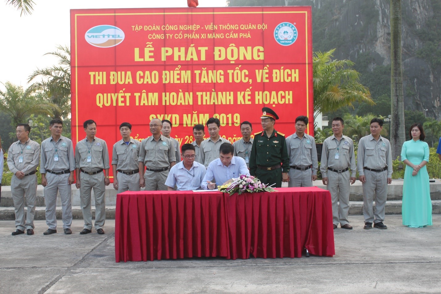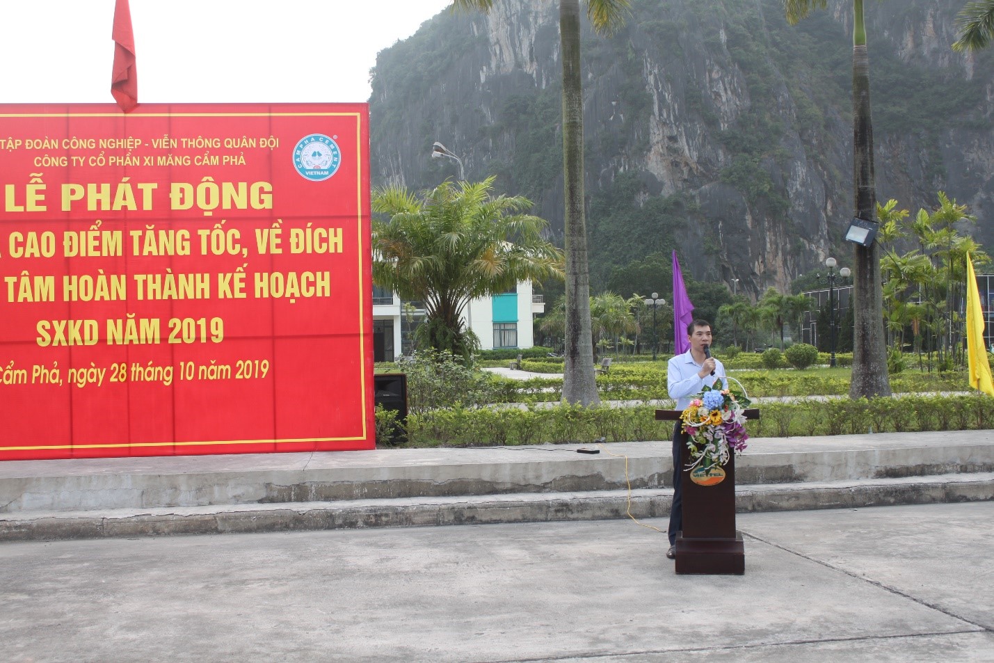 Căn cứ hướng dẫn của Cơ quan Chính trị Tập đoàn và thực hiện Nghị quyết Đảng ủy Công ty năm 2019, nhằm động viên toàn thể CBCNV cùng thống nhất ý chí, hành động tạo nên sức mạnh tổng lực để hoàn thành xuất sắc nhiệm vụ quý IV và SXKD năm 2019. Ngày 28/10/2019 vào lúc 6 giờ sáng, Công ty CP Xi măng Cẩm Phả bao gồm cả nhà máy chính và Chi nhánh phía Nam đã tổ chức lễ phát động thi đua cao điểm với chủ đề “Tăng tốc, về đích quyết tâm hoàn thành kế hoạch SXKD năm 2019”.