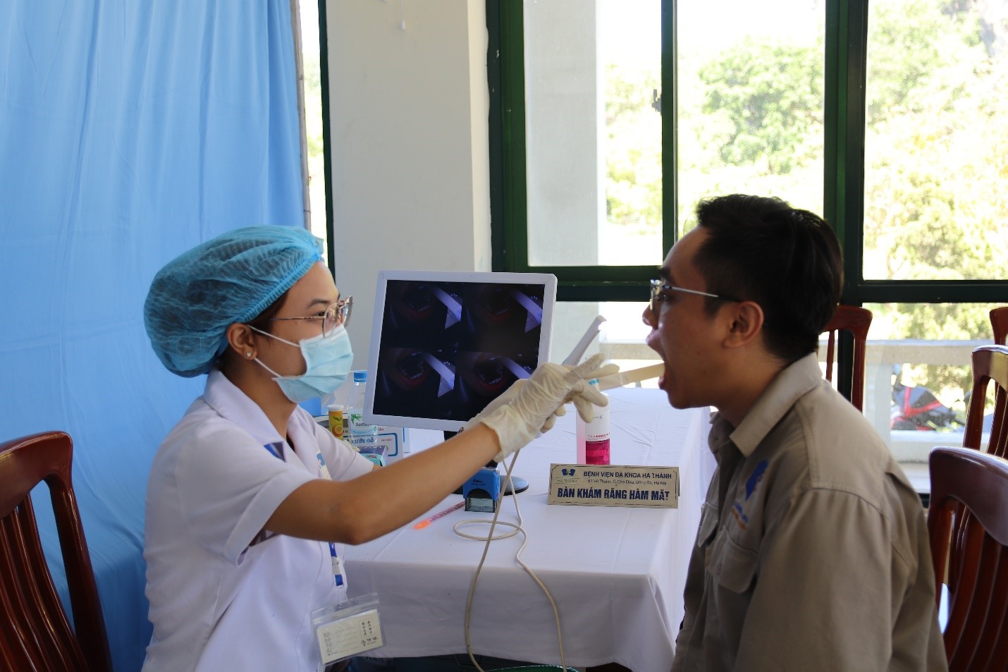 Chương trình khám được chia làm nhiều buổi, tạo điều kiện cho người lao động làm việc theo chế độ ca, kíp có thể lựa chọn thời gian khám phù hợp với lịch làm việc của mình. CBCNV đã được đội ngũ y, bác sĩ của Bệnh viện Đa khoa Hà Thành thực hiện đầy đủ các quy trình và các nội dung khám như: Khám tổng quát, siêu âm, đo điện tim đồ, chụp X-quang tim phổi T, lấy mẫu xét nghiệm máu và nước tiểu,…. Bên cạnh những danh mục khám lâm sàng, đối với người lao động làm công việc nặng nhọc, độc hại, nguy hiểm còn được khám bệnh nghề nghiệp (bụi phổi và điếc), đối với lao động nữ được khám phụ khoa. Nội dung khám chi tiết, đội ngũ y, bác sĩ chuyên môn cao, nhiệt tình, cùng các trang thiết bị hiện đại, chuyên dụng.